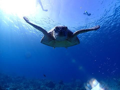 シュノーケリングでは、ウミガメがよくお昼寝をしているポイントへご案内いたします。